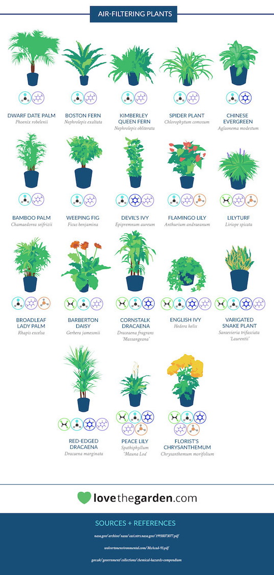 It won't surprise you to hear that the majority of people spend the bulk of their time indoors, whether it's at home or working in an office environment. As such, it’s important to ensure that air quality is of a high standard, something that regular houseplants can help achieve. Back in 1989, NASA conducted a Clean Air Study in association with Associated Landscape Contractors of America, in an effort to find the most effective common indoor plants for filtering harmful toxins and pollutants from the air. Their results have stood the test of time, and the most effective air filtering plants can be found below.
